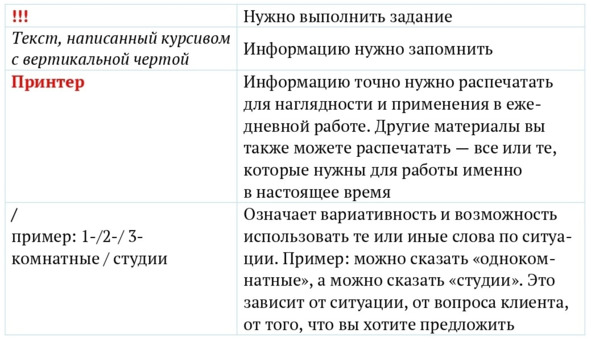 В книге есть условные обозначения: