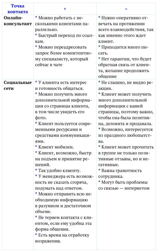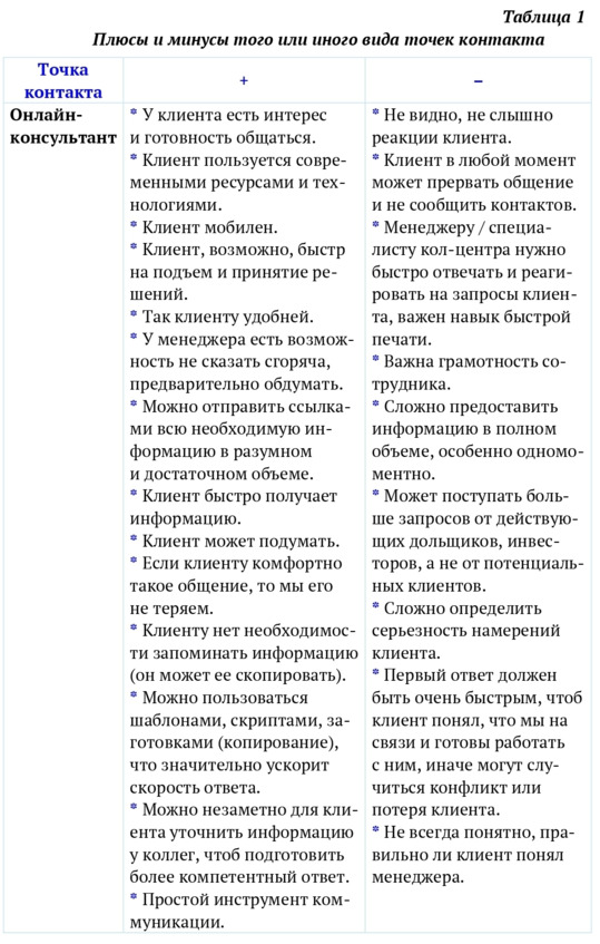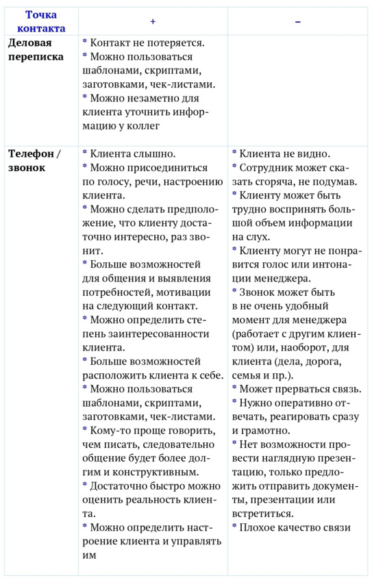 Под точками контакта в данном случае подразумевается работа с клиентом: