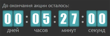 Также, для создания чувства срочности, маркетологи часто давят на нервы потребителям при помощи таймера обратного отсчета. Видели наверняка такой при продажах в соцсетях и на платформах онлайн магазинов?