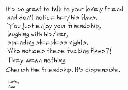 Возможно, первое впечатление обо мне складывается не из лучших, скорее всего многие подумают, что я скучная. И знаете, я скажу, что с одной стороны, это будет чистейшая правда, а с другой стороны нет. Просто, на самом деле мне нравятся банальные вещи, и это скорее всего скучно. Но знаете, я люблю разные мелочи жизни, которые приносят мне, какое-то неповторимое чувство. Вещи, которые присутствуют в жизни каждого человека, но которые многие просто не замечают. Возможно эти вещи действительно скучные…Такие вещи, как например незаправленные кровати, я наверное кажусь сейчас ненормальной, но это действительно поднимает мне настроение. Или же мне нравиться то, знаете, когда человек только проснулись, и еще толком не понимают, что происходит, и он такой сонный и милый и это так чертовски сильно веселит.