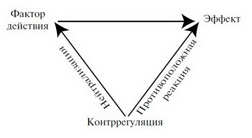 В фармакологии хорошо изучены закономерности доза-эффект, т. е. количественные и качественные особенности действия лекарственного препарата в зависимости от дозы. В то же время мы практически ничего не знаем о закономерностях и количественной зависимости реакции противодействия лекарственному веществу (как агенту, чужеродному для организма) в зависимости от вводимой дозы препарата и вызванного им эффекта. Мы назначаем фармакологические средства без учета реакции контррегуляции и не используем их в терапевтических целях.