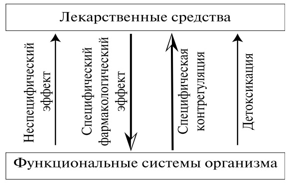 Одним из основных принципов фармакотерапии является положение, сформулированное академиком Н. В. Лазаревым: никогда нельзя рассматривать эффект лекарственного препарата, как его действие на определенные структуры организма – это всегда взаимодействие лекарства и организма, поздразумевающее обязательную ответную адекватную реакцию на воздействие чужеродного для него вещества.
