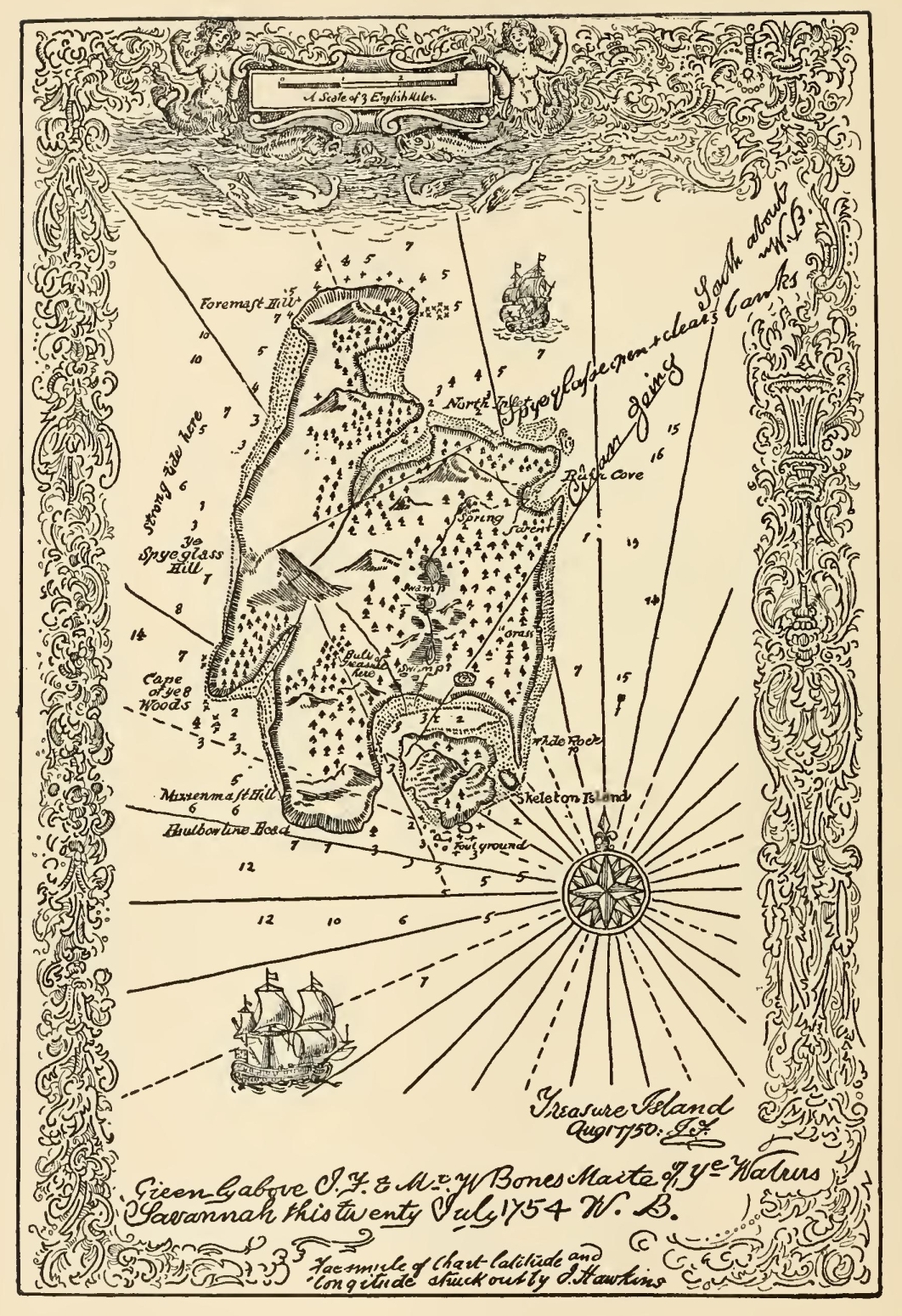 Когда я вернулся с тазом, доктор уже разорвал рукав капитана и обнажил его мускулистую руку, которая была вся татуирована надписями вроде: «Здесь счастливое место», или «Благоприятный ветер», или «Билли Бонса мечта». Все это было ясно и четко написано на предплечье, а выше, около плеча, сделан был (очень искусно, по моему мнению) набросок виселицы, на которой раскачивался человек.