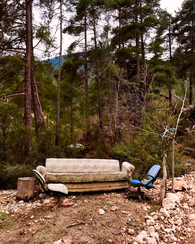 И чтобы как-то успокоить свою разыгравшуюся фантазию, стараюсь переключаться на приятные моменты, которые произошли с нами за прошедший день. Сегодня, к примеру, когда мы только вышли на тропу, сразу же на склоне увидели диван. Ну что, прямо здесь и остановимся! Вид шикарный, места для отлеживания боков есть, шутили мы. И вполне могли бы взять и остаться, если бы не прогнившая конструкция дивана, который не смог задержать нас более, чем на час. Мы присели, наслаждаясь моментом, представляя, что когда-нибудь придет и наше время жить оседлой жизнью, и мы обязательно поселимся в доме с красивым видом. И может быть тоже вынесем на улицу диван, чтобы ночью на нем можно было валяться и смотреть в звездное небо.
