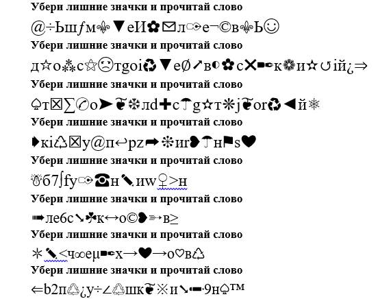 Вычеркни из каждой строки повторяющиеся в ней буквы и узнаешь слово