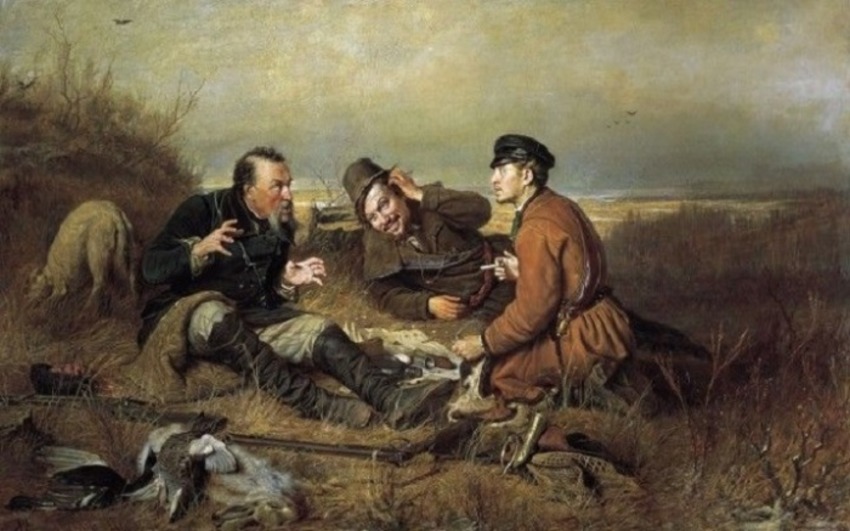 Б) «Охотники на привале» диалог охотников между собой? Подумайте какое хобби и интересы у этих охотников.