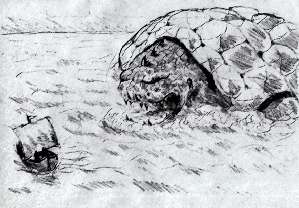 Волшебник не ошибался. То был эксиотрот – одно из величайших порождений Зла, созданное Дардолом ещё в Первую Эпоху Мрака, на заре его чёрных злодеяний. И в этот час к кораблю плыл один из них – гигантская морская черепаха с прочным, шипованным панцирем и огромной чешуйчатой головой, похожей на голову дракона.