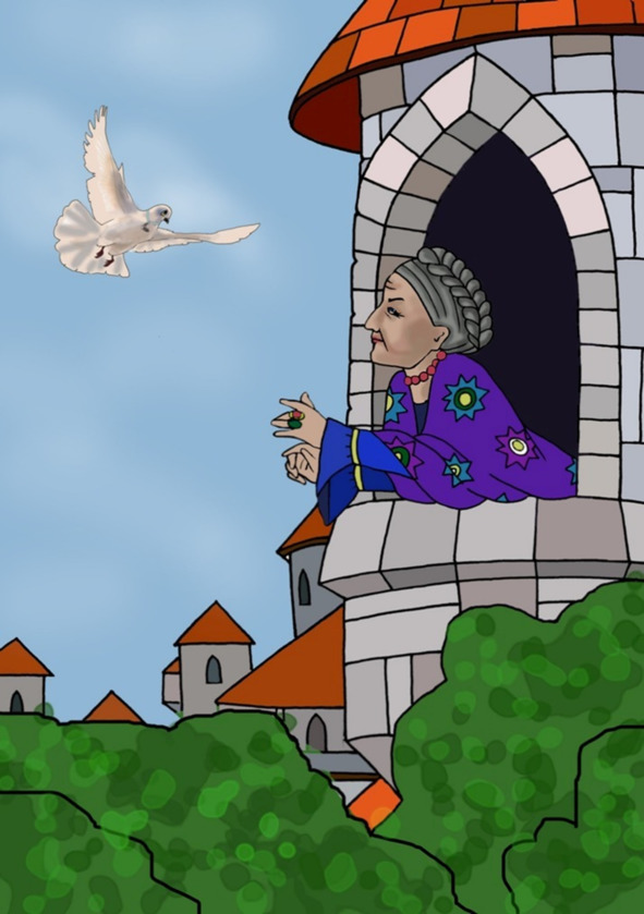 In the evening the white dove flew to the windowsill of the old lady’s bedroom again, and started to persuade her: