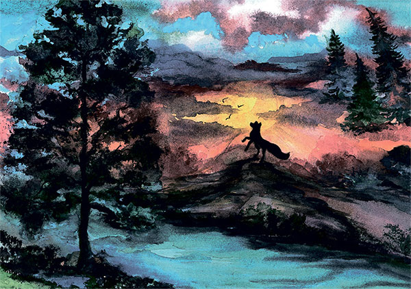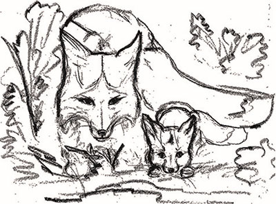 Вот солнце в небе заискрилось,И слышны трели соловья.И лис с лисенком воротилисьВ родную норку у ручья.Без сил улегшись рядом с мамой,Малыш забылся крепким сном.А мама сына согревая,Лесную песню напевая,Лисенка нежно укрывалаСвоим прекраснейшим хвостом.