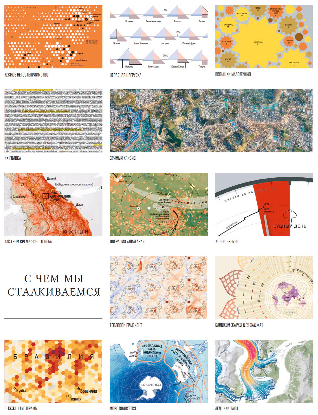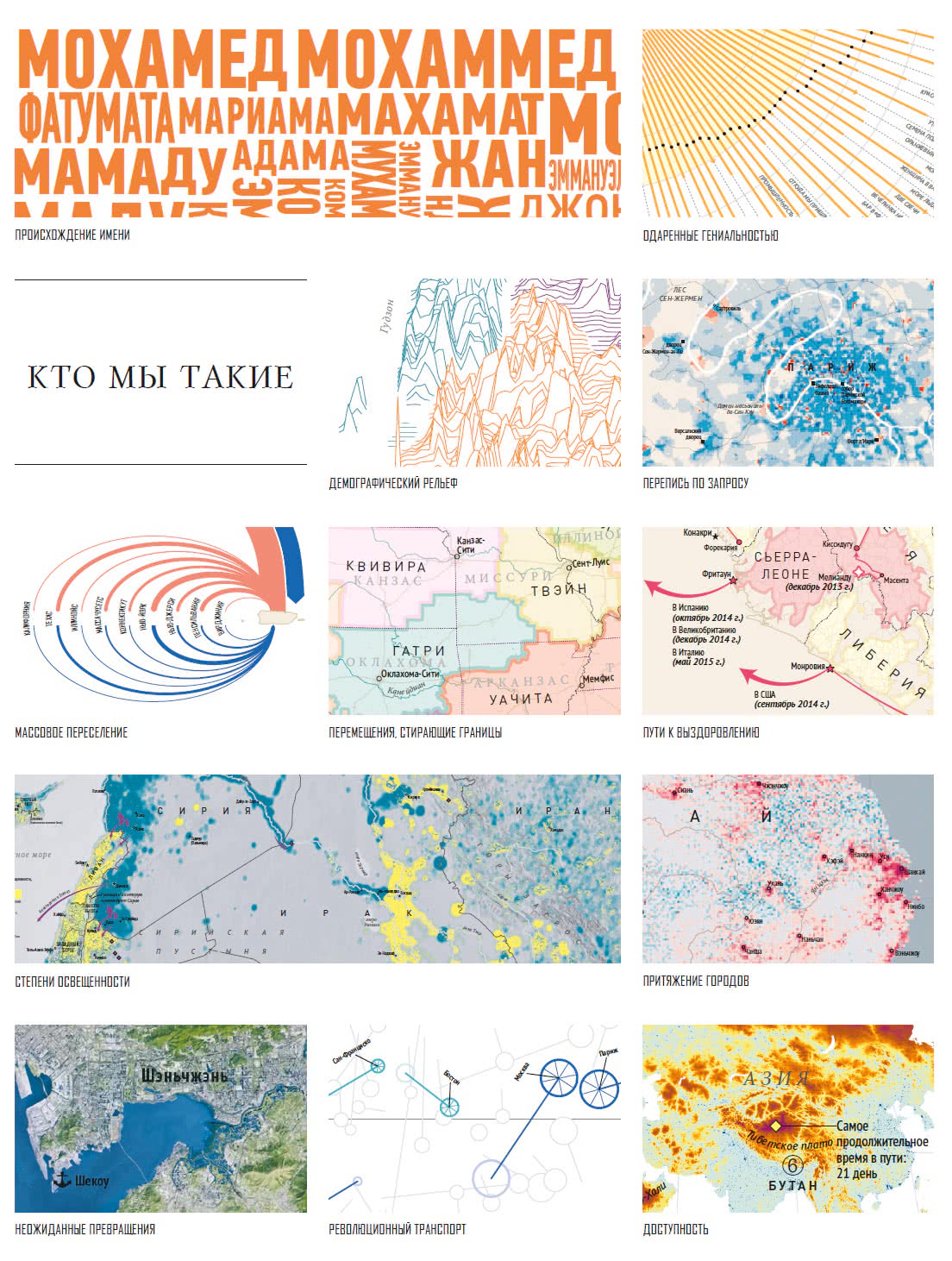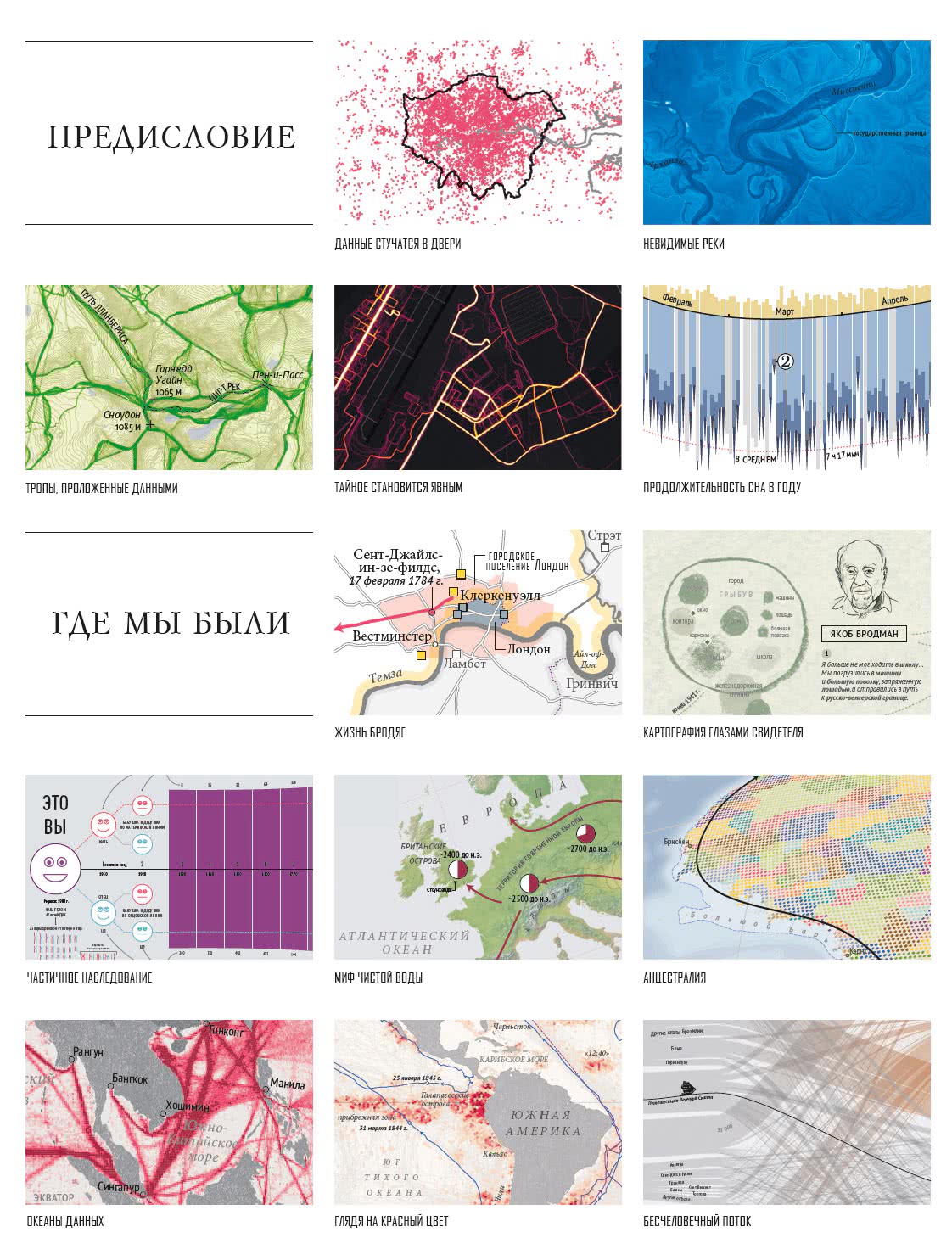 Но невидимое является таковым не только из-за размера. Иногда мы упускаем что-то из виду, потому что не способны оглянуться назад и осознать: вокруг нас растут города и загрязняется воздух, земля под нашими ногами становится все более горячей. Иногда невидимое проступает лишь со временем – например, благоустройство районов или отступление ледников. А если речь идет об исторических событиях, то видимое исчезает из нашего поля зрения после смены поколений. Могущество информации заключается в том, что она позволяет остановить время в нужном нам моменте. Как негативы надо проявить, прежде чем получить фотографии, так и закономерности, скрывающиеся в наборах данных, можно рассмотреть, только создав карты и графики. Такая визуализация дает нам возможность изменять масштаб, сравнивать, запоминать.