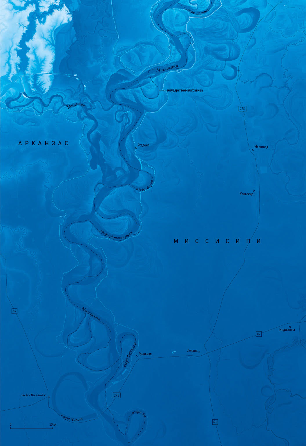 Аэрофотосъемка при помощи лидара[3] позволяет заглянуть в прошлое. Замеряя время, которое лазер тратит на то, чтобы достичь поверхности и вернуться к сенсору на борту летательного аппарата, исследователи могут создать точные карты профиля местности. На той, что приведена выше, благодаря миллионам измерений проступили давно исчезнувшие изгибы реки Миссисипи.