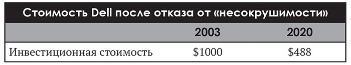 Компания утратила свой ориентир. «Команда взяла курс на управление затратами вместо того, чтобы контролировать качество и уровень обслуживания клиентов», – заявил основатель Dell Майкл Делл. В октябре 2013 года он завершил выкуп акций с привлечением заемных средств, и стоимость компании изменилась. Они до сих пор трудятся над тем, чтобы вернуть фирменный уровень качества сервиса.