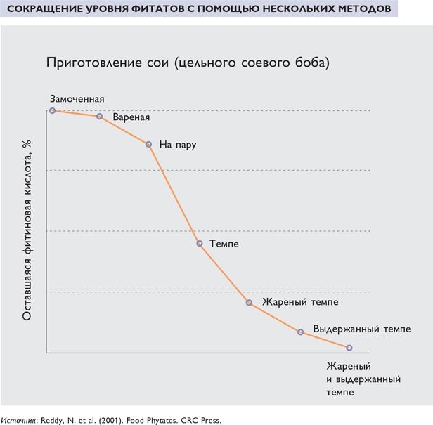 Фитиновая кислота присутствует в растениях в форме солей – фитатов. Она есть в семенах злаков и бобовых, а также в орехах. Фитиновая кислота образует хелатные соединения с цинком, марганцем, медью, железом и магнием и может мешать их всасыванию[161]. В норме бактериальная микрофлора кишечника содержит мало фитазных ферментов, способных расщеплять фитаты.