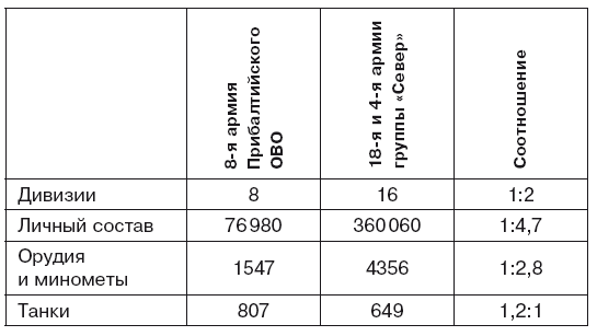 Итого в этой группе войск находились 21 пехотная, 3 моторизованные и 3 танковые дивизии. А также в полосе группы армий «Север» находилась в резерве главного командования 4-я моторизованная дивизия СС. Всего группа армий «Север» имела 28 дивизий, не считая 3 охранных (боевая ценность их была невелика, но уже в июле 1941 г. они использовались на переднем крае).