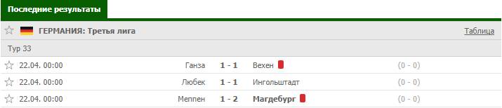 Вариантов ставок становится множество: нулевые серии, большие тоталы, обе забьют или нет. Мы с ребятами часто наблюдали, что в одной лиге выигрывали только гостевые команды, а в другой только хозяева. Мы видели и точные счета в одной лиге, зачастую одинаковые до 6 игр подряд. Один из таких скриншотов я хочу предложить вам к анализу. Германия 20.04.2021 год. Смотрим и анализируем.