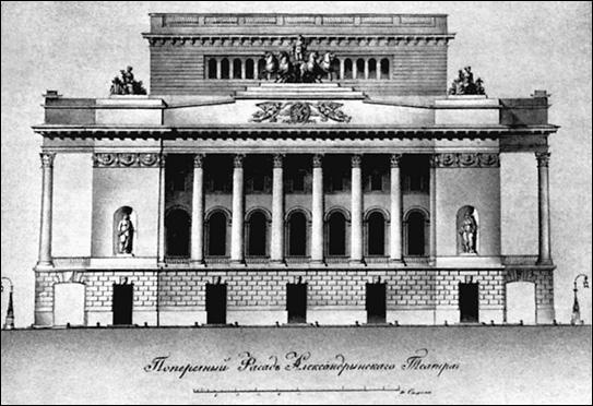 Александринский театр. Проект главного фасада. Архитектор К.И. Росси. 1832 г.