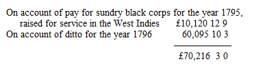 In the Account of the Extraordinary Expenditure of the Army, from 25th December, 1795, to 6th December, 1796, is the following:
