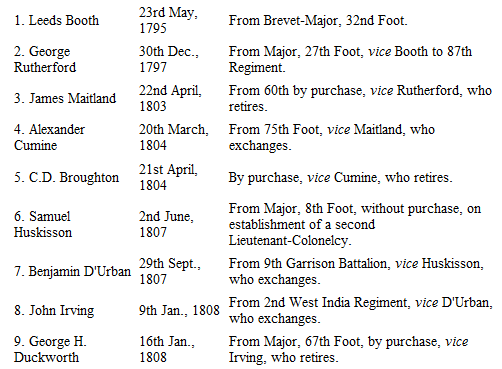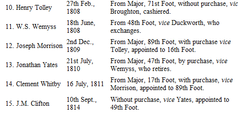(Lieutenant-Colonel Clifton retired, Jan. 23rd 1819, and the second Lieutenant-Colonelcy was abolished.)