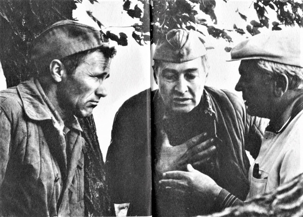 В. Шукшин, В. Тихонов и С. Бондарчук перед съёмкой. 1974