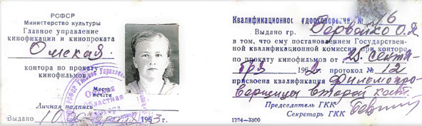 Однажды фотографию мамы за работой в кинопрокате напечатали в газете «Сибиряк», а рядом было несколько строк об её передовом труде. И вся наша семья этим гордилась. В то время она уже работала составителем программ: планировала, какие фильмы в какое время будут идти в кинотеатрах в нескольких близлежащих районах Омской области.