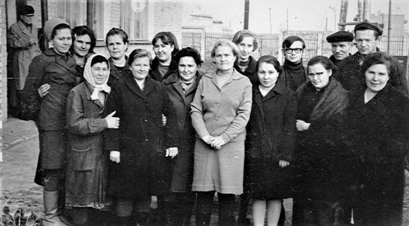 Калачинские кинопрокатчики (в центре, в светлом костюме – директор Эрна Даниловна Выйганд)