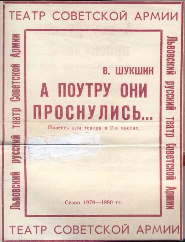 А в 1980 году нас вместе со студентами других факультетов за активность и успешную учёбу наградили туристическими путёвками «Москва-Киев-Львов». И в этой поездке мы попали на спектакль Львовского русского драматического театра Советской Армии «А поутру они проснулись…» по произведениям В. М. Шукшина. После спектакля наша группа студентов с Алтая прошла за кулисы к артистам, и там состоялась тёплая встреча земляков Шукшина с актёрами, только что сыгравшими его героев.
