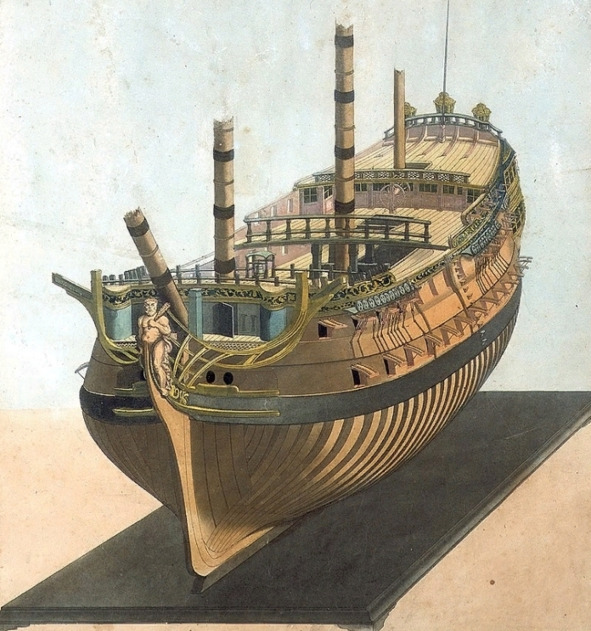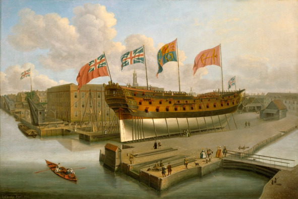 Линейный корабль «Бекингем» на стапелях. Художник Джон Клевли (1712—1777)