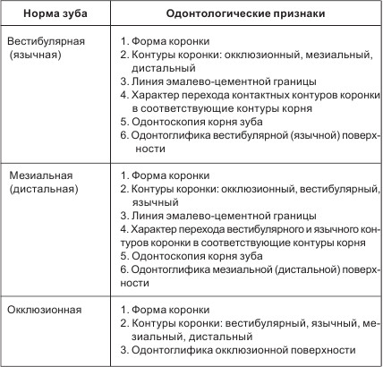 Последовательность одонтоскопии в различных нормах приведена в табл. 1.