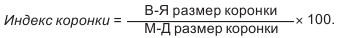Индекс коронки представляет собой процентное отношение вестибулярно-язычного размера коронки к ее мезиально-дистальному размеру: