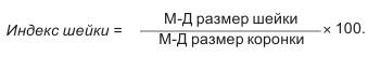Индекс шейки рассчитывают как процентное отношение мезиально-дистального размера шейки к мезиально-дистальному размеру коронки: