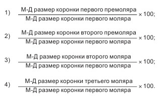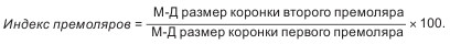 Индекс премоляров вычисляют для нижнего зубного ряда, он показывает отношение мезиально-дистальных размеров этих зубов: