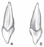 Кроме краевых гребешков, на резцах бывают различными выраженность и форма язычного бугорка (от плоской до премоляровидной).