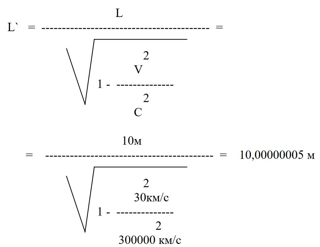 Для утверждения своей версии Лоренц использовал формулу опыта Майкельсона, позднее названную "множитель Лоренца". Это отношение поперечного и продольного лучей показывает, во сколько один луч меньше или больше другого. Но для версии Лоренца эта формула выполняла другую роль,– множителя, подошла случайно. Лоренц вставил множитель в формулу длины Галилея. И что получилось? Теперь длина движущегося тела будет сокращаться, в зависимости от скорости движения. При скорости движения, равной скорости света, длина сократится до нуля. Это и есть электронная теория Лоренца.