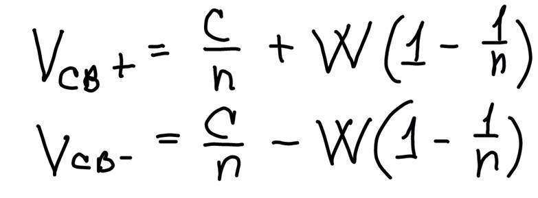 Vсв-=C/n-ΔW и Vсв+=C/n+ΔW или: