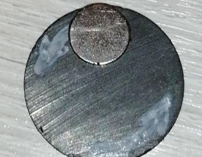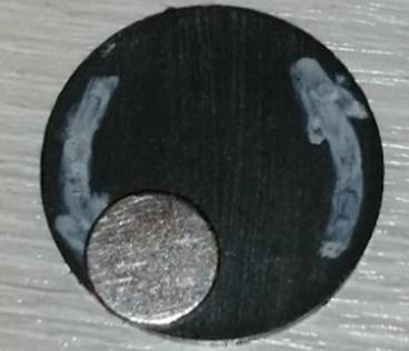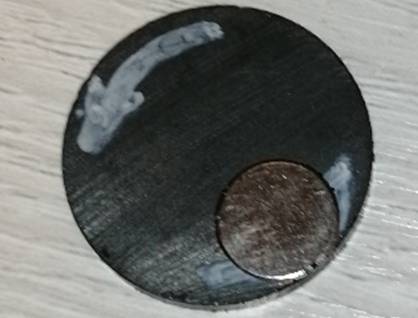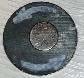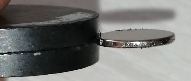 Фото № 28. Несколько небольших магнитов на верхнем диске имитируют микроструктурное магнитное поле.