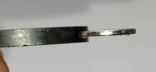 Фото № 7. Два кольцевых магнита друг над другом, расположенные так, чтобы притягиваться.