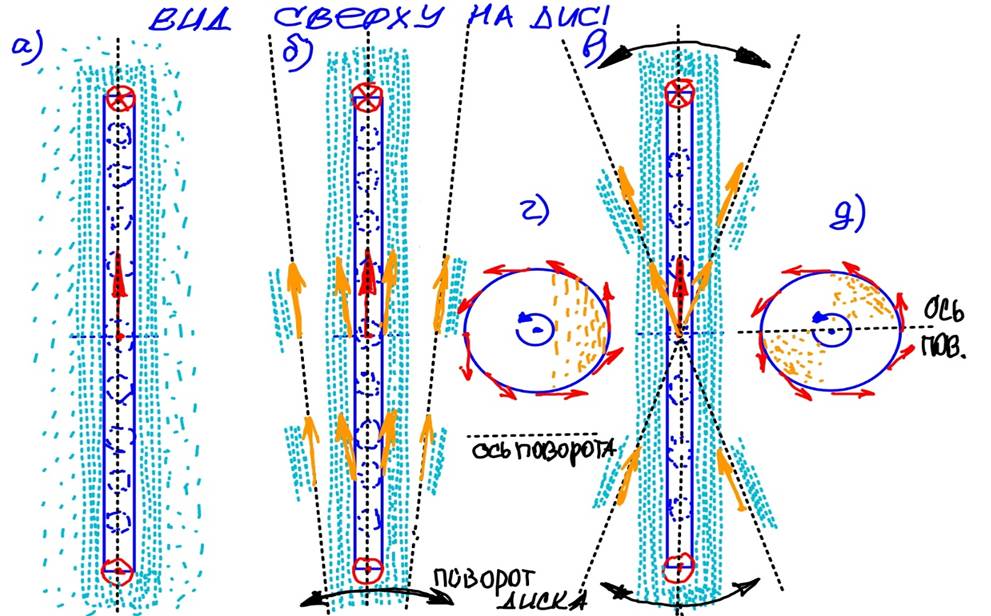 Рисунок № 23. Схема возникновения сопротивления частей вращающегося диска при его повороте/развороте.
