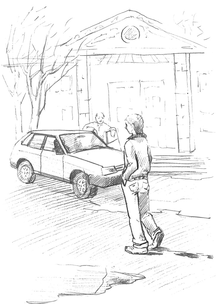 И в это время к клубу подъехала вишнёвая «девятка». Из неё вышел лысоватый мужчина среднего роста в чёрной кожаной куртке.