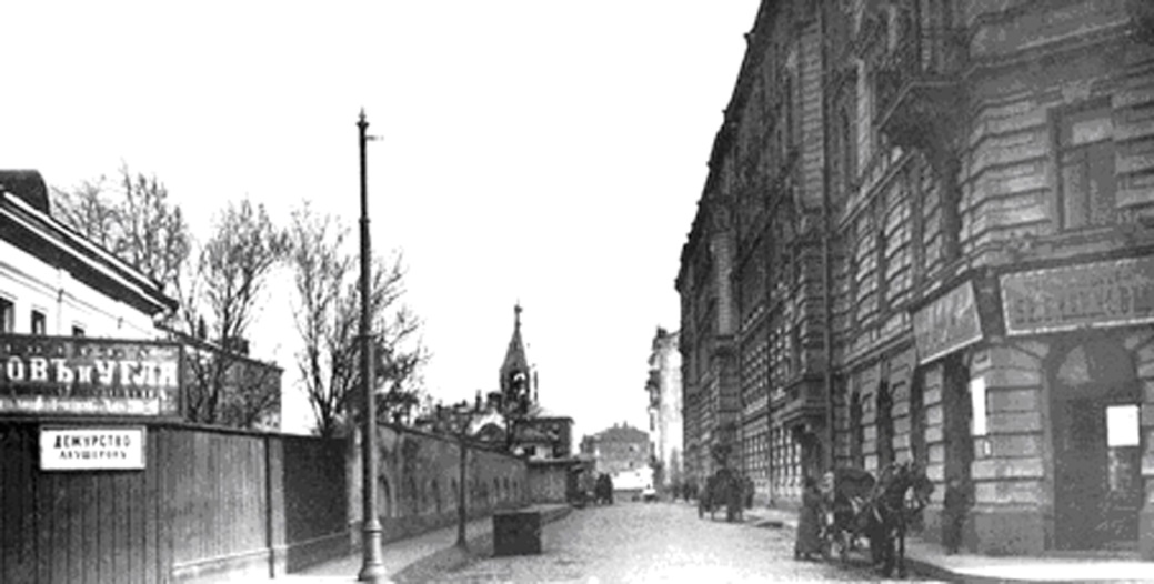 1914 г. Вид с Остоженки на 2-й Ильинский (ныне 2-й Обыденский) переулок. Справа – дом № 7, где жил Николай Лямин.