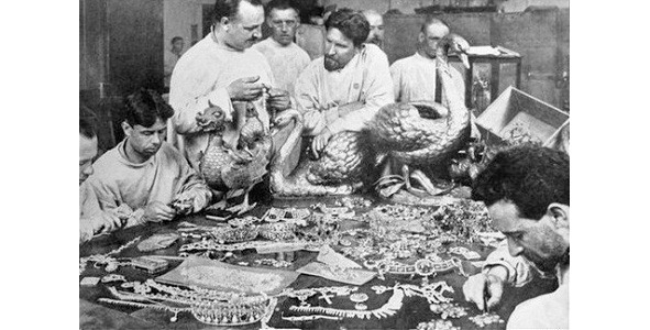 Коммунисты, ведомые еврейской верхушкой, сортируют бриллианты и золото, снятое с трупов убитых ими русскоподданных всех сословий для отправки своим патронам-«ротшильдам», наславшим красную чуму на Россию: Шиффам, прочим еврейским и английским фамилиям западной буржуазии. Русским золотом, отнятым через геноцид был (да и есть) доверху набит «Запад», его закрома и экономики. Тоже самое было сделано и с природными ресурсами захваченной, порабощенной России (СССР), которые, под сурдинку ленинского НЭПа передавались Советами западным фирмам в виде концессий. Отдавались для прилюдного, официального, «законного» грабежа (как и ныне, при компрадорах ельциных-путиных отдаются).