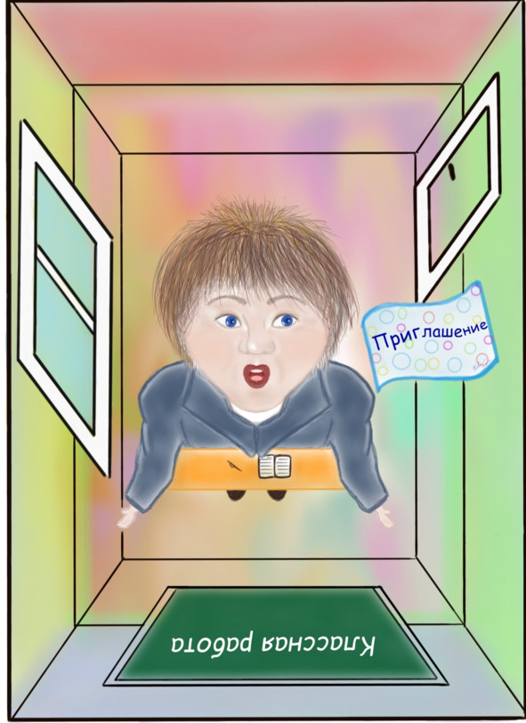 – Виктор, послушайте, а как же урок? – продолжала беспокоиться учительница. – Что же, вы так и будете у потолка висеть? Приземляйтесь немедленно! По школе за партой летать не полагается! Я поставлю вам плохую отметку за поведение.