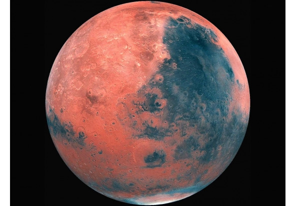 Поверхность Марса окрашена в красные и синие оттенки цвета