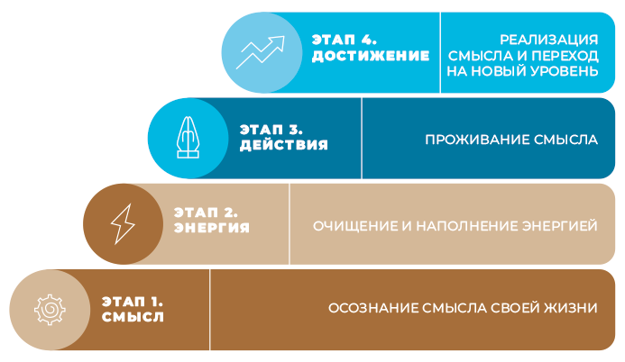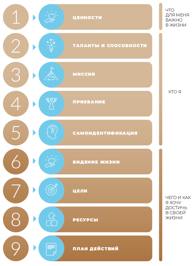 Я считаю, что за пять-семь лет можно полностью трансформировать свою жизнь и что эти позитивные изменения будут подчинены логике развития человека. Понятно, что количество времени, необходимого для этого, у каждого будет индивидуальным в зависимости от стартовой точки и прилагаемых осознанных усилий. Какие-то этапы могут накладываться друг на друга, но общий паттерн будет прослеживаться. У каждого этапа своя задача и свой инструментарий для гармоничного и эффективного прохождения. А смысл пути в целом – максимально безупречно простроить себя на персональном уровне так, чтобы приблизиться к желаемой реальности. И начинается любая успешная и наполненная смыслом жизнь всегда с осознания своих истинных ценностей, миссии и предназначения.