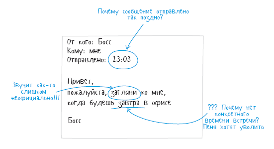 Вот почему работа будет все теснее связана с эмоциями. Для наиболее сложных профессиональных взаимодействий не существует заранее прописанных сценариев. Услышав об «эмоциях на работе», вы, наверное, думаете о важных карьерных вехах: собеседованиях, переговорах по зарплате и годовых отчетах. Но вы, скорее всего, испытывали не менее сильные эмоции в связи с обыденными событиями. Вас взволновало короткое «ОК» генерального директора в ответ на комментарий в корпоративном чате. Вас бесит, когда коллега перебивает вас в пятый раз. Вы беспокоитесь, не нужно ли срочно ответить на деловое письмо, появившееся во входящих в субботу вечером.
