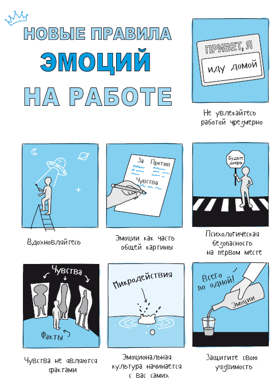 Эмоции на работе – тема не новая. Но частенько приходится слышать о том, что они враги, которых нужно одолеть. Мы и сами так думали. Теперь же мы понимаем, что чувства – это ориентиры, и стараемся научиться понимать их и эффективно выражать. Мы хотим, чтобы вы начали воспринимать эмоции как то, к чему можно относиться с осторожностью и любовью. В конце концов, свои чувства вы носите на работу каждый день.