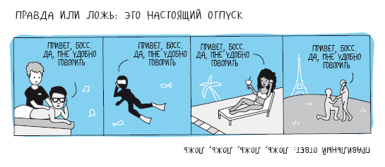 Возьмите отпуск: длительный перерыв делает нас здоровее и продуктивнее, особенно если во время отъезда мы почти или вообще не контактируем с коллегами. Тем не менее более половины американцев не берут все положенные им дни оплачиваемого отпуска. Не так-то просто отправиться на далекие острова, если одна мысль о том, чтобы на один день отвлечься от почты, внушает вину. Раньше Лиз боялась даже попросить об отпуске, потому что думала, что ее начальники могут счесть ее ненадежной. Руководители, вспомните, как вы говорите подчиненным, что отдыхать важно и еще как важно. Большинство наемных работников утверждает, что их боссы не говорят о важности отдыха ничего или же их сообщения носят негативный или двусмысленный оттенок; однако же почти каждый респондент хотел бы использовать больше дней отпуска, если бы ощущал чуть больше поддержки в этом вопросе. Тем из вас, чьи руководители не поощряют уходы в отпуск, будут полезны следующие несколько советов.