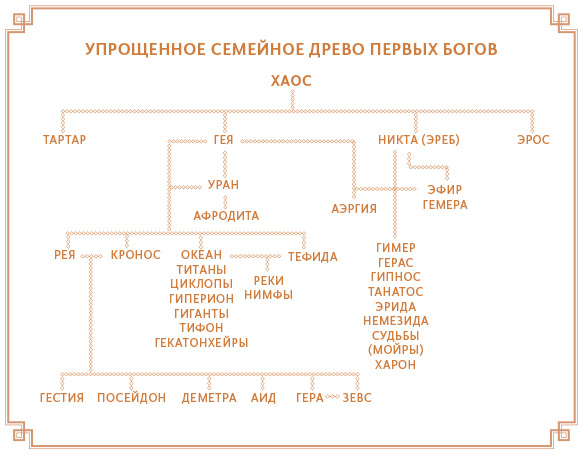 Первым возник из Хаоса протобог Эрос (Любовь). Изначальный Эрос был могущественной силой, вероятно даже величайшей из всех, ибо без Эроса другие существа, возникшие из Хаоса, остались бы неподвижными и неизменными, вечными, но бесплодными. Ибо Эрос воплощал не только любовь, но и сам принцип размножения. В позднейшие века он передал многие свои обязанности другим божествам и превратился в милого римского Купидона[5]. Однако нам следует помнить (несмотря на то, что дальше пойдут порой очень страшные истории), что вся вселенная мифа была создана Любовью.