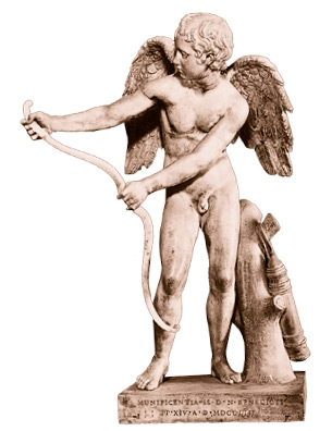 Знаменитая картина «Амур-победитель» (1602) Караваджо показывает Эроса как разгульного парня с неотразимой улыбкой: он, ухмыляясь, возвышается над разными сферами человеческой деятельности (которые символизируют доспехи, лютня, циркуль и другие предметы) – их сметает с пути его сила. Едва ли не самая знаменитая статуя Эроса – та, что с 1893 года стала достопримечательностью Лондона; она стоит на Пикадилли-сёркус. На самом деле скульптор Альфред Гилберт создавал статую бога-спутника Эроса по имени Антэрос – Отвратитель любви. Это одна из первых статуй, отлитых из алюминия.