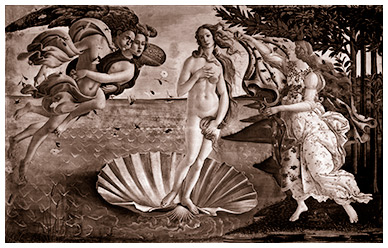 Легенда о рождении Афродиты (которую римляне называли Венерой) в 1480-х годах послужила вдохновением для создания одного из самых известных произведений искусства Ренессанса – картины «Рождение Венеры» Сандро Боттичелли: здесь показана богиня, выходящая из вод. Возможно, моделью для Венеры стала прекрасная Симонетта[11] (в эпоху Возрождения в Италии ракушка была метафорой как раз для той части тела, которую Венера прячет на этой картине).