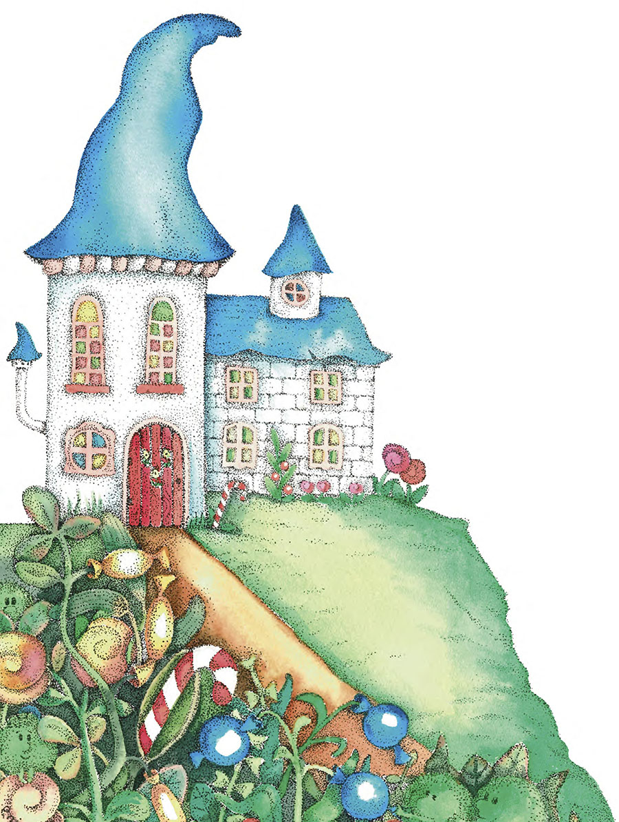 Домик, где жили братик с сестричкой, был, как мы знаем, белоснежный, с ярко-синей крышей. Разноцветная дорожка вела к красной двери, на которой мама носотролликов нарисовала цветы.
